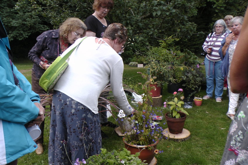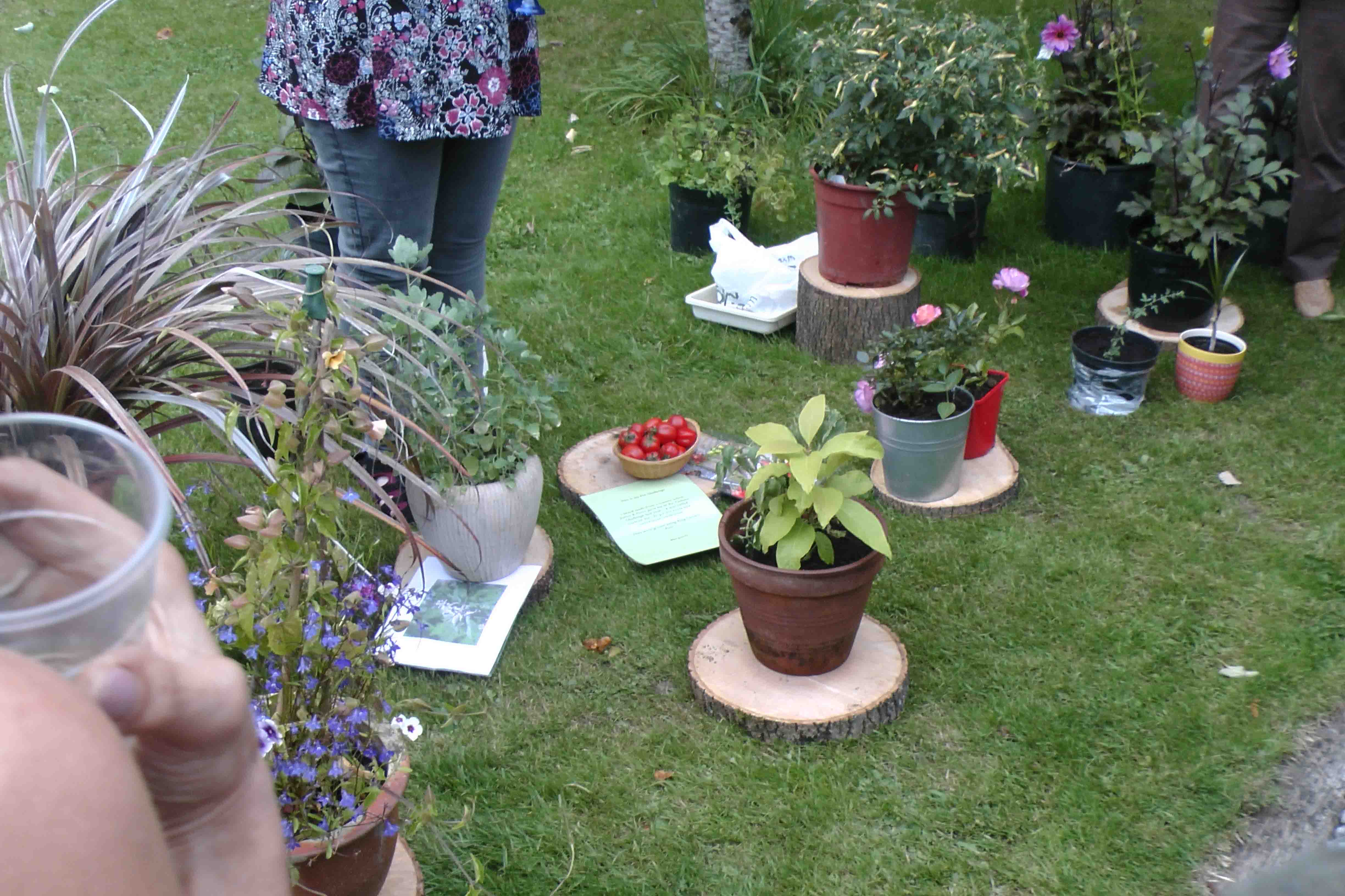 The August meeting of Cothi gardeners took the form of a summer social event held at the lovely home and gardens of members Philip and Anne Large. Over 30 members arrived bringing plates of food to enjoy and share, but before that came the interesting and fun sharing of ideas from this year’s growing challenge – to grow anything in a moveable pot.