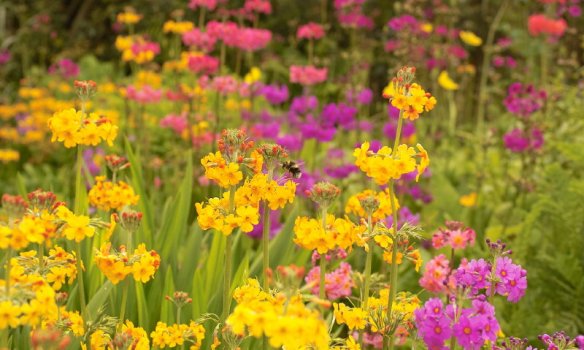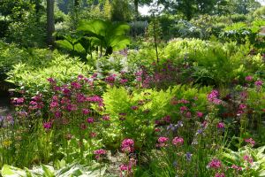 Primula japonica (Candelabra): These are moist soil plants preferring shady sites and flower May to June. They hybridise and seed around freely often resulting in a mass of multi-coloured blooms.