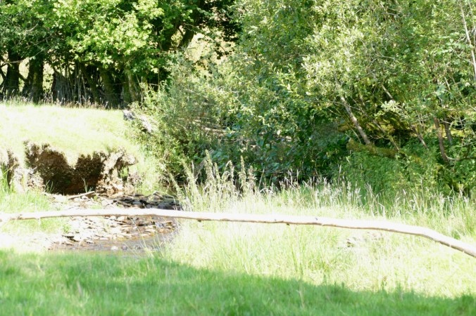 Colin explained that these are likely to be juvenile birds expanding into new territory, and that our type of upland stream probably wouldn’t support birds year round, but still a great thrill to see it, even if my photos of it as I whizzed round give just a brief impressionistic flash of blue. Much later after scanning several times the 6 images I’d taken in 2 bursts on the camera as it flashed away from me, with explosive white droppings left in a trail, I could make out it had actually settled on a perch beneath the willow branches…