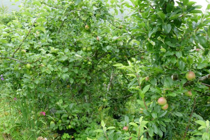 Rambling roses which looked stunning towards the end of June have been brought to an abrupt end by all the damp grey conditions, but our apples have never looked as good, and after the very dry spring the foliage still seems to be in surprisingly good shape in spite of the dreary July weather.