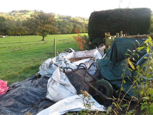 All the willows from here planted 10 yrs ago to soak up the water, were cut down and the chippings are being stored here …