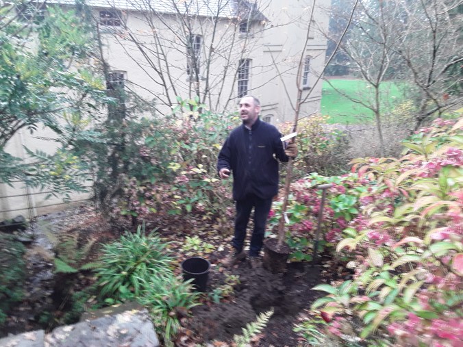 It was lovely to hear from Moira very recently that she was able to join Joseph Atkins, Aberglasney’s head gardener, who has very kindly planted a newish New Zealand cultivar of Magnolia – Tikitere, in memory of her husband Keith Brown, in the gardens, behind the mansion. In due course a label will record the dedication of the tree in Keith’s memory, so a wonderfully fitting memorial for a great Carmarthenshire gardener and friend of many of us in Cothigardeners, who passed away earlier in the year. Many thanks for Moira’s permission to include her photos: