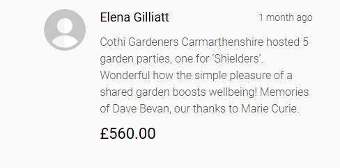 Elena has also forwarded on this confirmation from the NGS Great Garden Party Just Giving Website of the brilliant Cothigardeners’ donations arising from September’s 4 garden parties. Shown below: