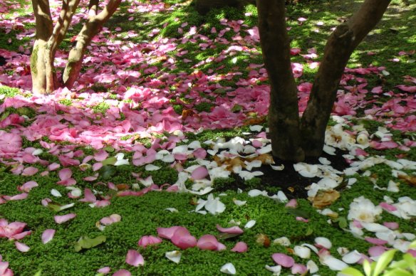 So maybe something others might fancy trying out? Rather like thinning apples, it’s a bit of a wrench to cut off healthy stems with developing flower buds, so it’ll be a gradual process over a year or two I guess. But you’re only likely to achieve the sort of gorgeous effect I photographed at Albert Khan below if you do, by allowing light and petals to reach beneath the flower laden branches, and lie amongst the bare trunks.