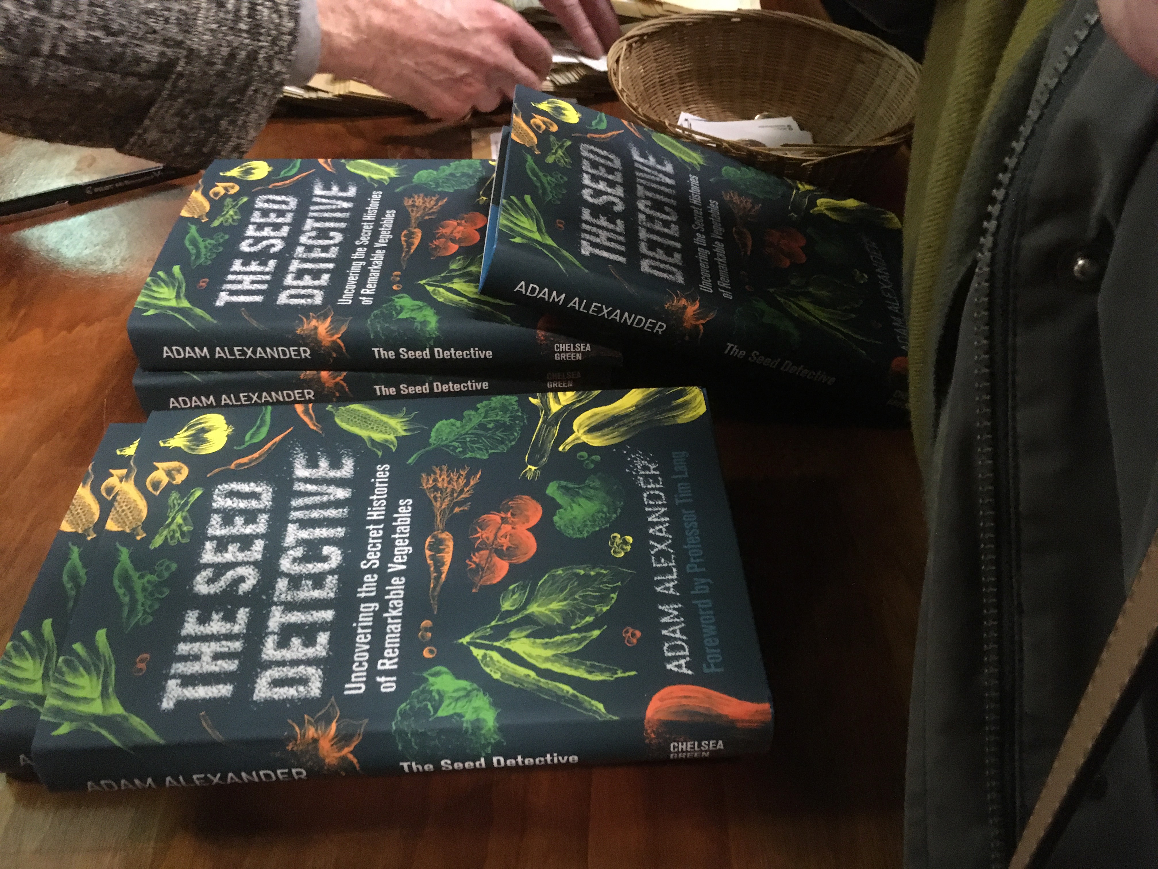 On that note of seed harvesting, Adam’s talk came to a close. Appreciative thanks were expressed for such a wide-ranging, erudite, and engrossing talk, and there was then a rush for the table where different seed varieties were laid out, along with Adam’s book ‘The Seed Detective’.