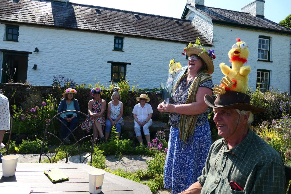 In early June, to take advantage of the amazing weather at that time, a Mad Hatter’s Tea Party was held for members at the wonderful Gelli Uchaf garden for the purpose of viewing the garden, particularly the wild flower meadows, sporting a mad hat and consuming a delicious tea.