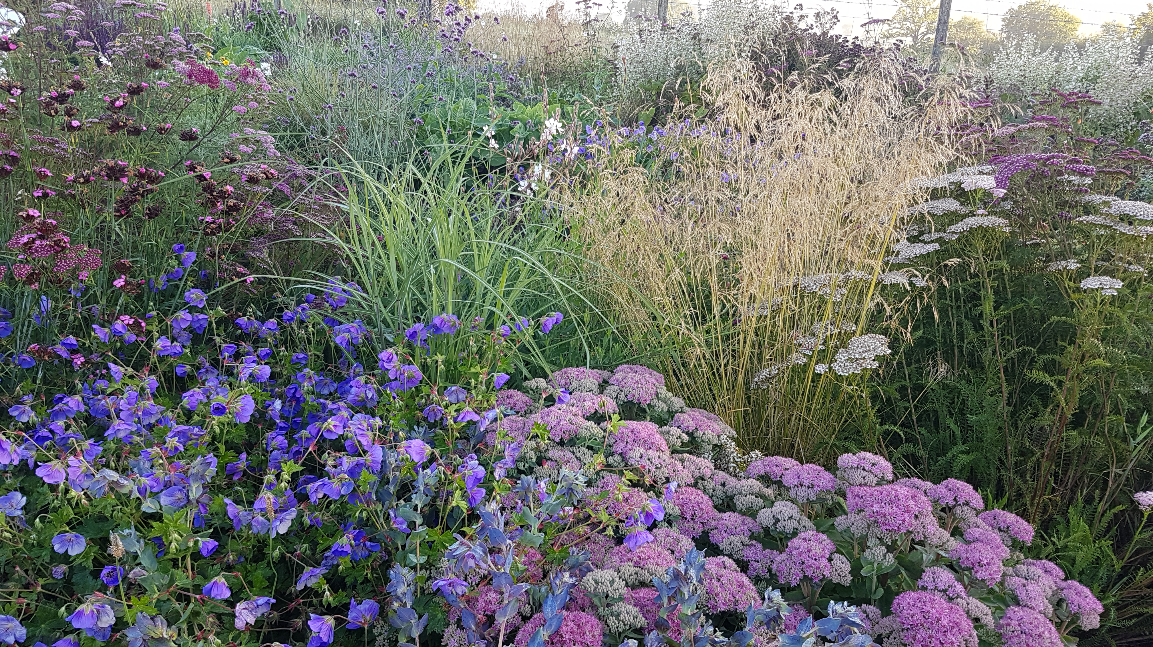 In her gardening style, Sally has been very inspired by Piet Oudolf and his use of perennials and grasses, and plants particularly to attract pollinators. She gardens exclusively organically, and uses only peat-free compost. She doesn’t water plants after two weeks have passed since planting, unless a plant dehydrates completely.