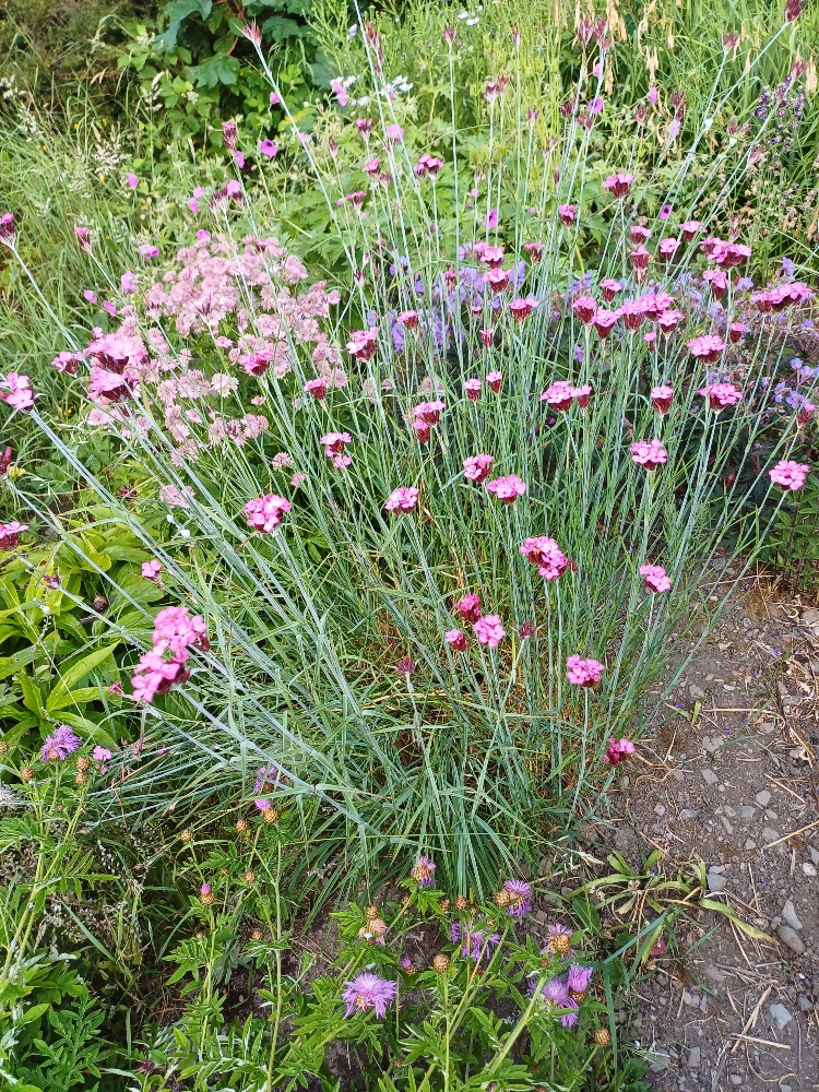 Sally has particular praise for Dianthus carthusianorum, with its single pink flowers held on tall stems above narrow, grassy, grey-green leaves; it flowers all summer long.