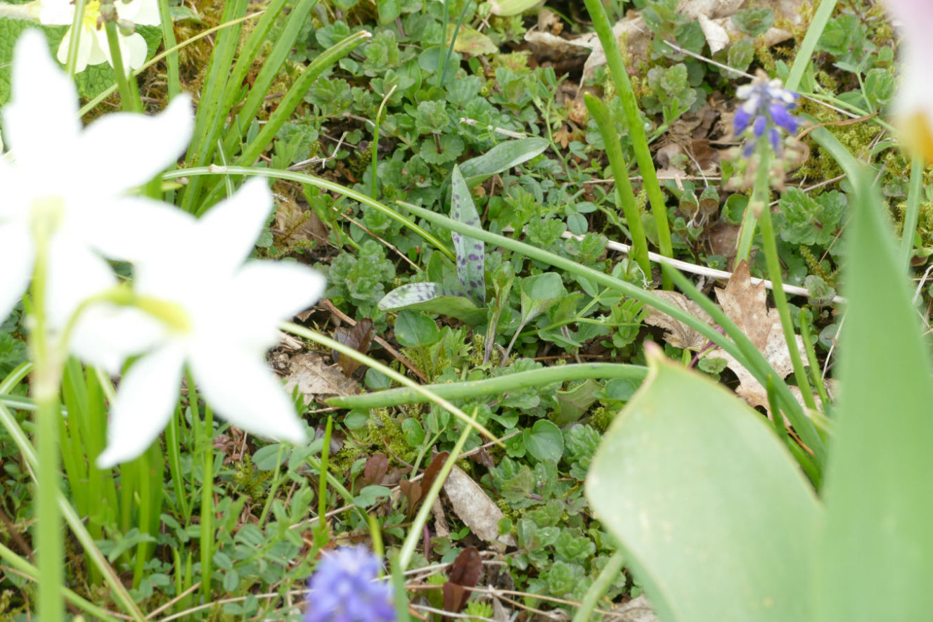 Every section of the garden includes wild flowers, which are either a legacy from the meadow seedbank or sown by the birds. These include red campion, ribwort plantain, and ox-eye daisies, with the addition of native ferns (which were always there) and Epimedium x versicolor ‘Sulphureum’. You have to be selective and choose plants which will work well together.