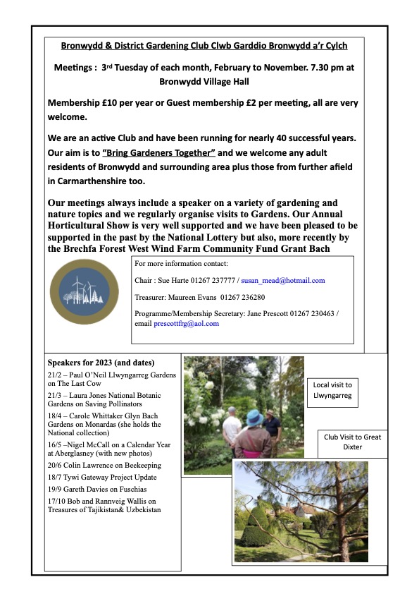 All Cothi Gardeners members are invited to attend meetings of the Drefach Felindre Gardening Club – you can see the programme here.
