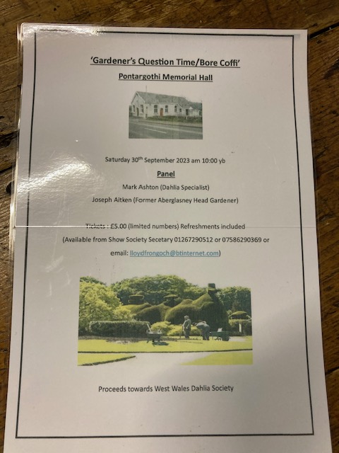 Gardener’s Question Time/Bore Coffi at Pontargothi Memorial Hall on Saturday 30 September at 10am