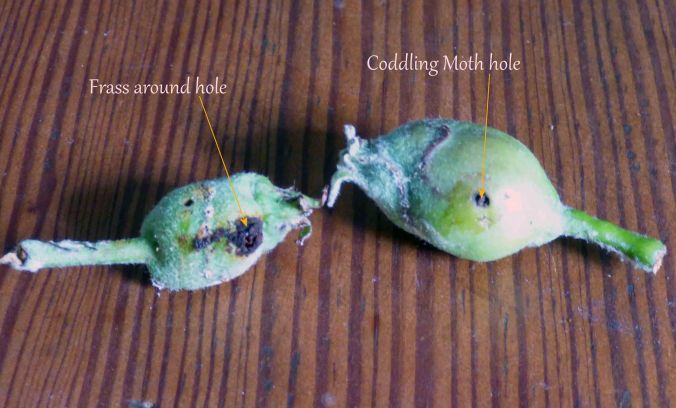 Anyone with apple trees, now’s a great time to thin fruits. There’s meant to be a “June drop”, which naturally thins fruit out, but if you a have a few apple trees, they’ll likely have flowered at different times and so have fruit of different sizes right now. So it’s worth thinning out clusters of fruit about now to leave just one every few inches. I used to think this was a bit brutal, but it really does produce bigger apples, and also you can pick out any deformed apples and particularly any with the tell-tale frass of the codling moth caterpillar. If you get rid of these now, it will mean healthier fruit to harvest and less damage next year.