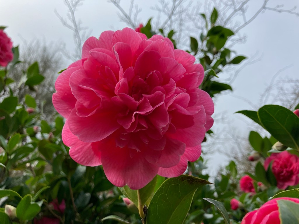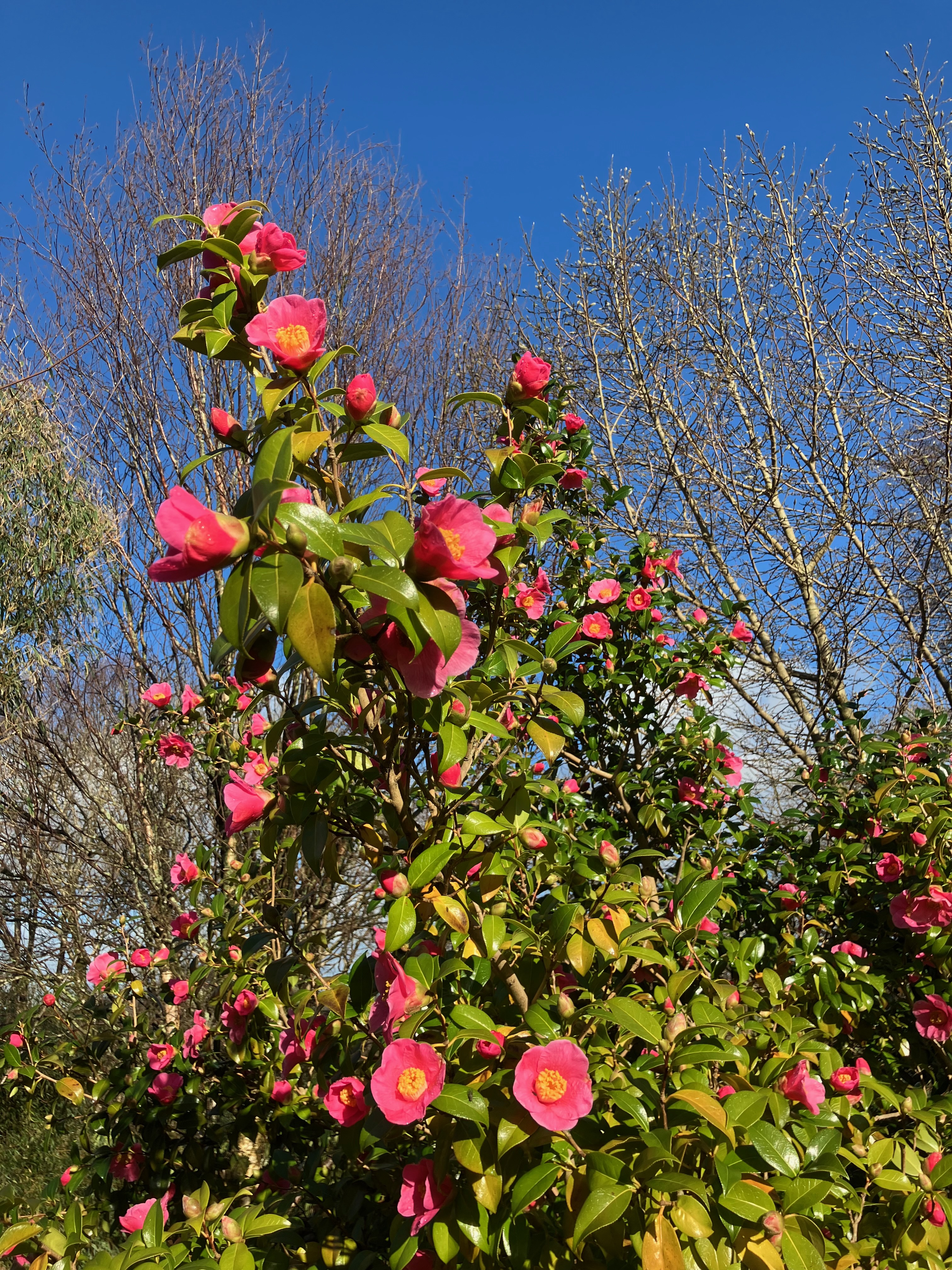 By 12 February, when we returned after a break away, C. ‘St Ewe’ was in full flower, along with Rhododendron ‘Christmas Cheer’. Other Camellias just starting then, and flowering well by the end of the month, include ‘Anticipation’, ‘Debbie’, ‘Donation’, ‘Inspiration’ ‘Paul’s Apollo’ and ‘Roger Hall’.