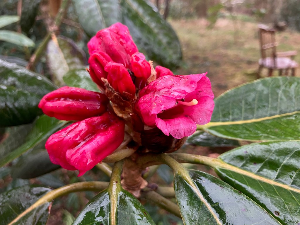 By the end of February, R. ‘Christmas Cheer’ was completely over, and R. calophytum starting. It had a lovely crop of flowers this year.