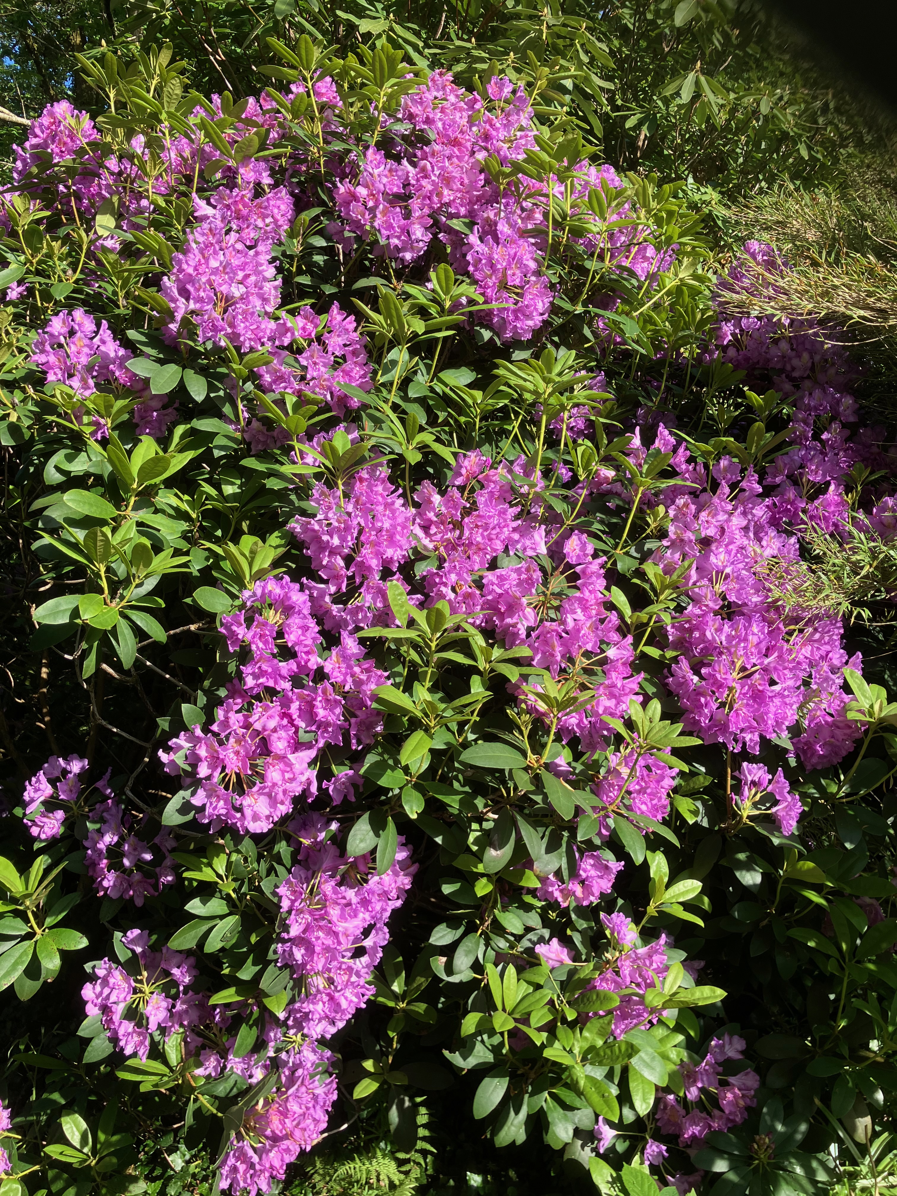Despite the persistent dampness and coolness of the weather, spring continued with the blossoming of the bluebells and more rhododendrons. Even in mid-May, perhaps because of the weather, the later-flowering Magnolias and Camellias still clung on to some of their flowers.