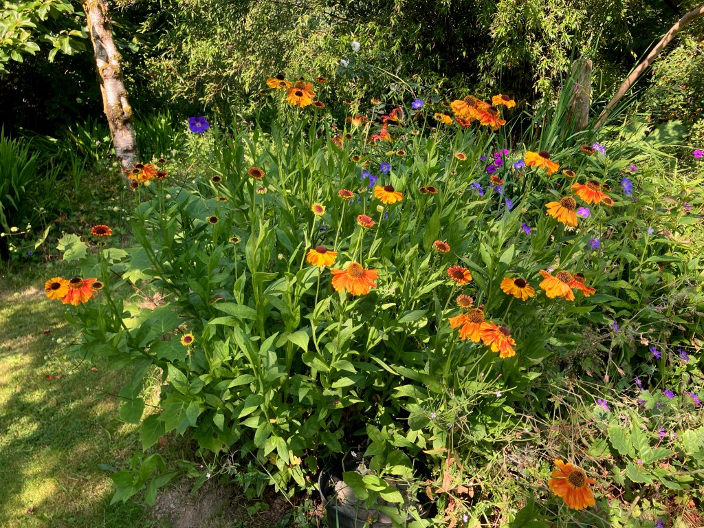 Otherwise, hydrangeas and crocosmias have really been the story of this month, along with heleniums. This year has also been extremely good for high-bush blueberries, which cropped from early July and into September.