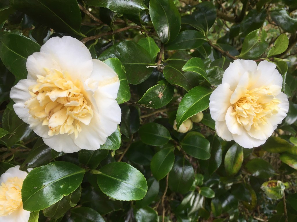 Camellia ‘St Ewe’ is always the first Camellia to have flowers here (this year its first flower opened on 13 January). It is such good value – it will continue flowering right through to April, although its peak is March, and of all the camellias that I have, its flowers are probably the least damaged by frost.