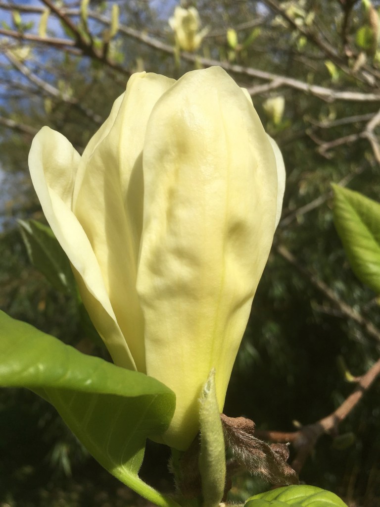 M. salicifolia is also early, followed by M. stellata , M. ‘Leonard Messel’ and M. soulangeana, which are more weather resistant. M. ‘Star Wars’, beautiful and floriferous but scentless, is a bit later, and the latest of all (into May) are M. denudata and M. ‘Yellow River’(left), a lovely pale yellow with a delicious scent.