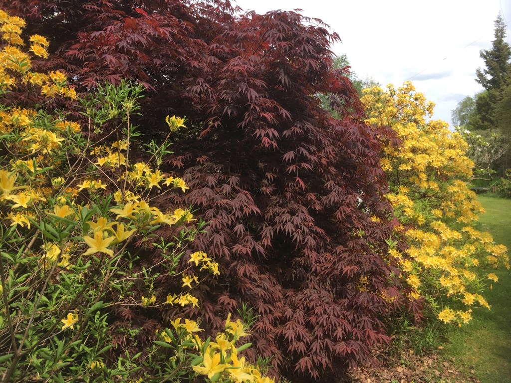 With the azaleas, we have focussed particularly on the scented ones. We have quite a few of Rh. luteum, as well as a number of others, the names of some of which have been lost over time. The scent of each of the varieties is quite different, but adds up to lots of pockets of scent around the garden.