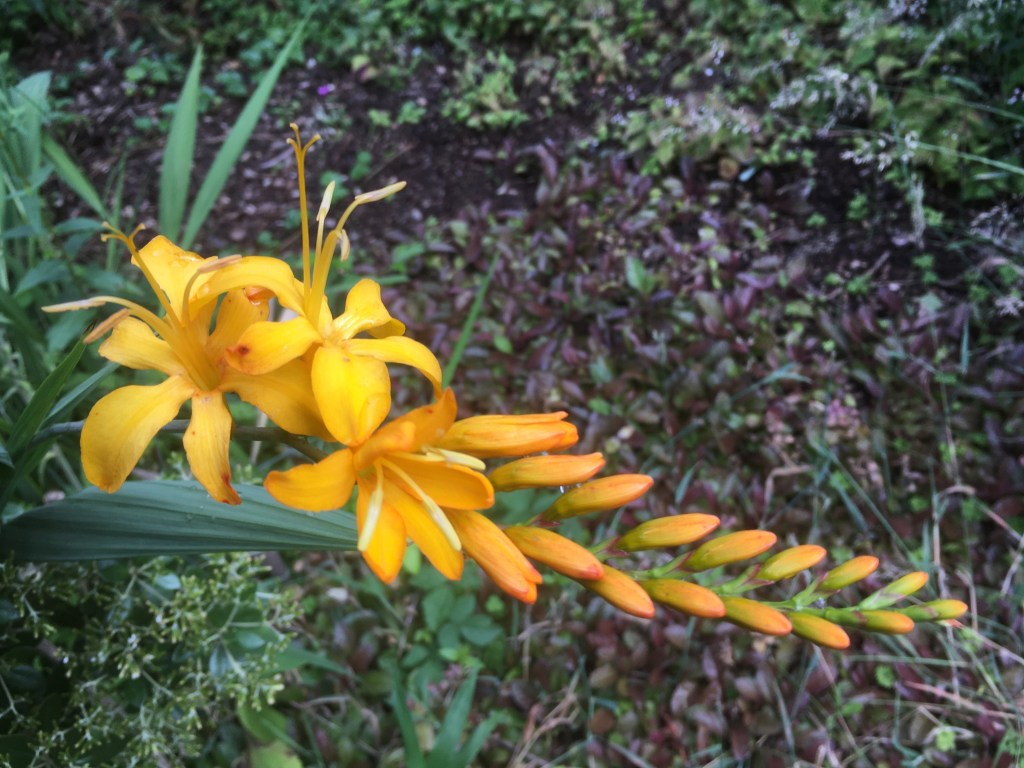Other plants in bloom at the moment include Crocosmia and Hemerocallis, standing up quite well to their battering by the rain.
