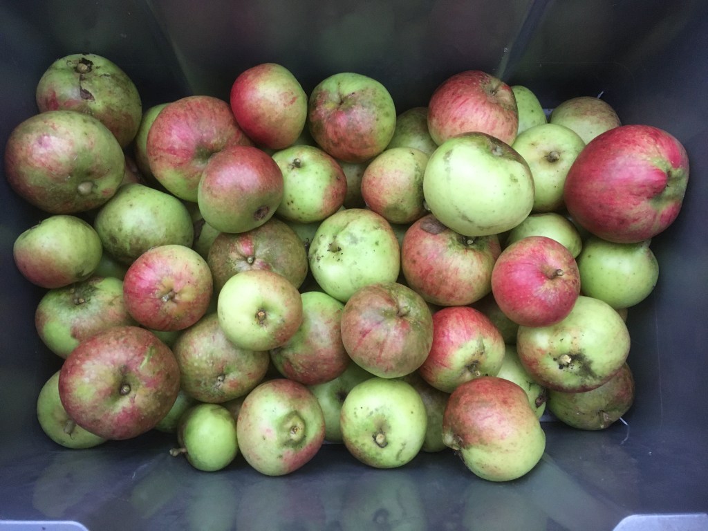 Apple season! The harvest is (thankfully!) not quite as abundant as last year, but still fairly plentiful. Three trees decided to take a complete break, but the others have done reasonably well. We have had good yields this year from ‘Red Devil’ (a self-fertile eater so always crops well, crisp to start with, but going soft quite quickly), Ashmead’s Kernel (a lovely russety apple, good keeper) and cooker ‘Newton Wonder’, also a good keeper.