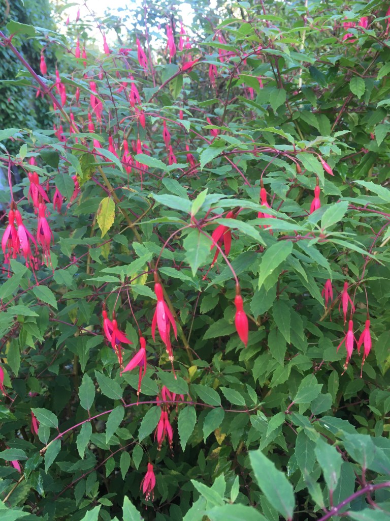 I seem to have mentioned hydrangeas in every entry since July, and they are still contributing – such a good value plant, adding colour when it’s much needed. The hardy fuchsia, Fuchsia magellanica, one of the few plants that was here when we bought the property, also comes into its own at this time of year. Mahonia is now also starting to flower, we have M. ‘Charity’ with its very bold, upright, bright yellow flowers (always the first in flower), and M. bealei, with paler yellow, more fragrant flowers.