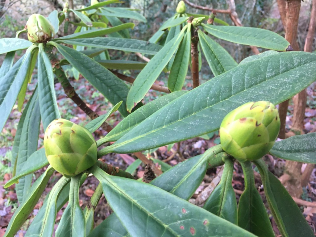 My established Rhododendron falconeri and also Rh. calophytum encouragingly have a mass of fat flower buds (provided I can protect the latter from the ravages of the grey squirrels as it is on the edge of woodland); a R. falconeri planted later has its single first flower bud, and I think the R. grande has buds (for only the second time).