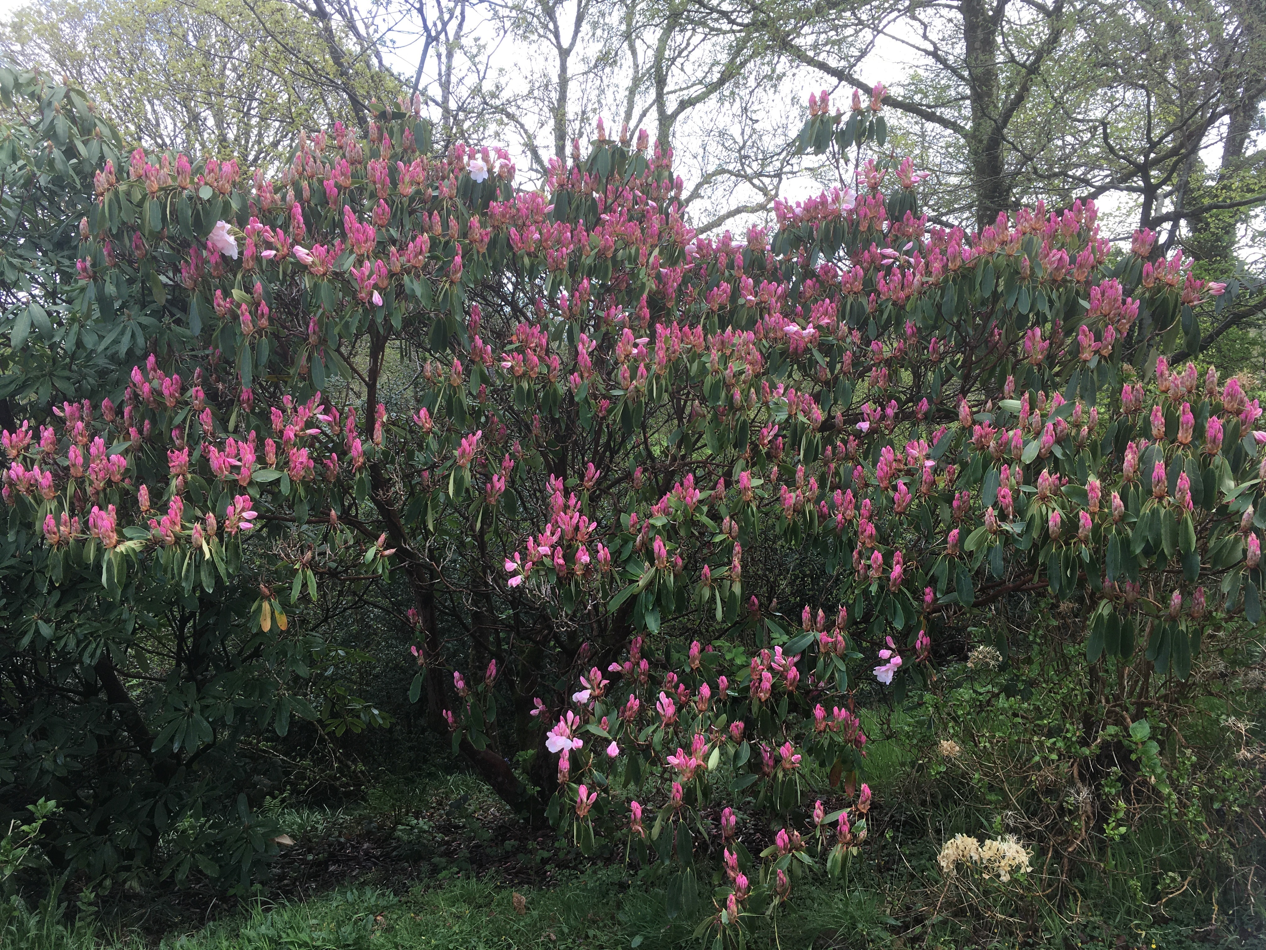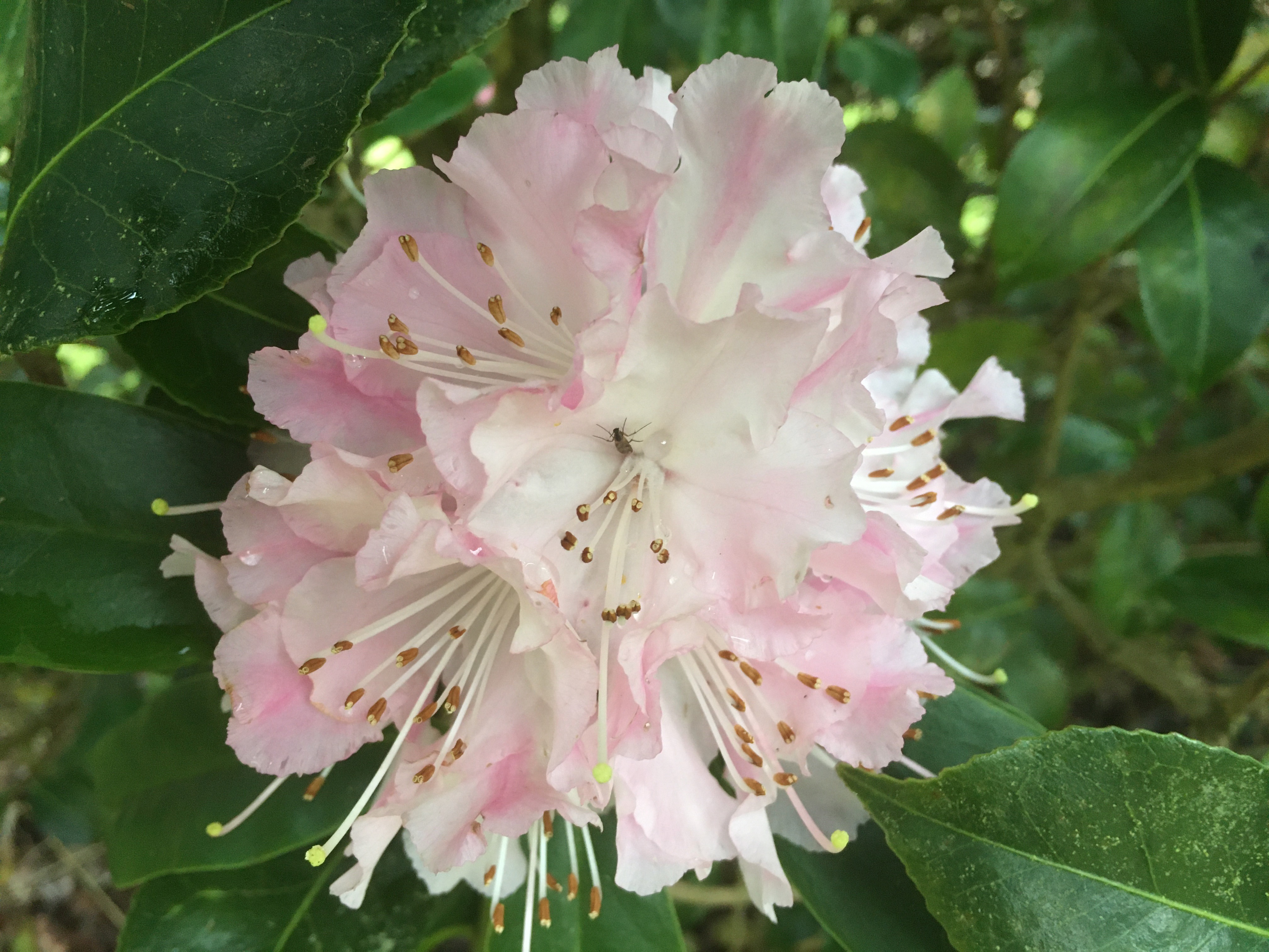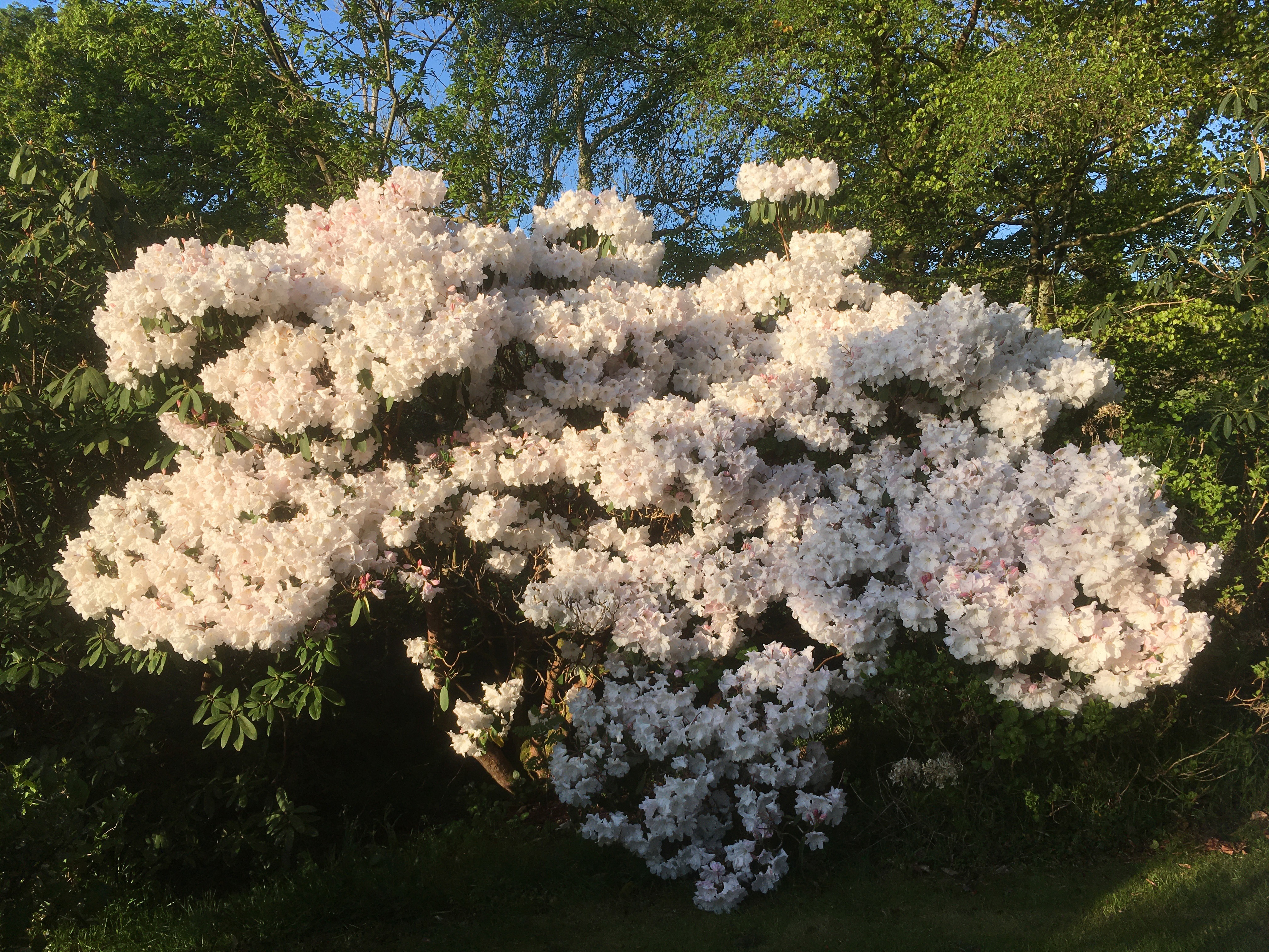 The big story of May in the garden are the rhododendrons, whether they be the evergreen, leathery leaved sort, or the deciduous azaleas. The star of the show is Rh. loderi ‘King George’, one of the very first rhododendrons which we planted, which is beautiful in bud, in flower, and at every stage in between. It is beautiful not just visually, but also for its scent, which is a very gentle, delicate one, perfuming the air around.
