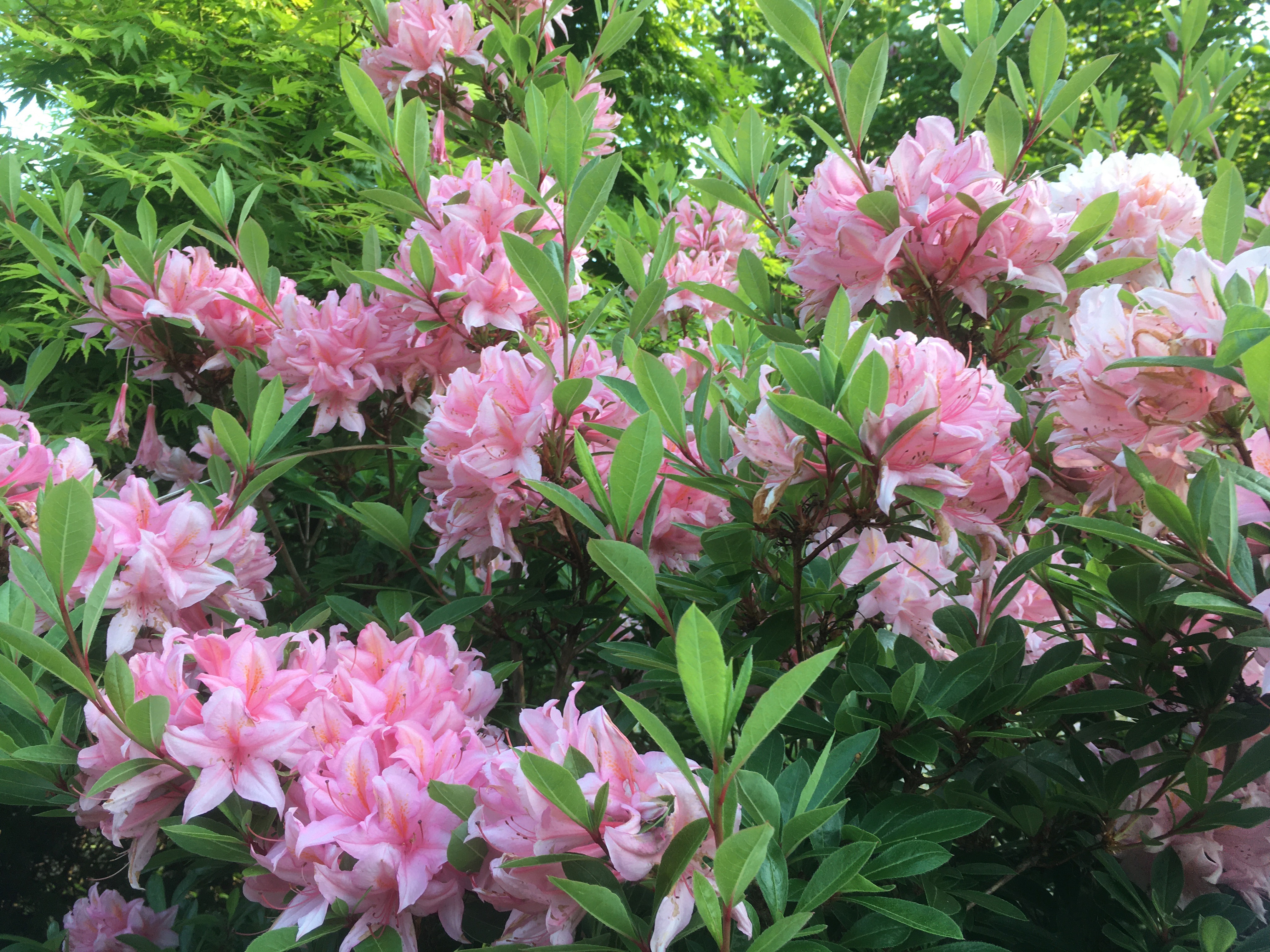 With the azaleas, we have focussed particularly on the scented ones. We have quite a few of Rh. luteum, as well as a number of others, the names of some of which have been lost over time. The scent of each of the varieties is quite different, but adds up to lots of pockets of scent around the garden.
