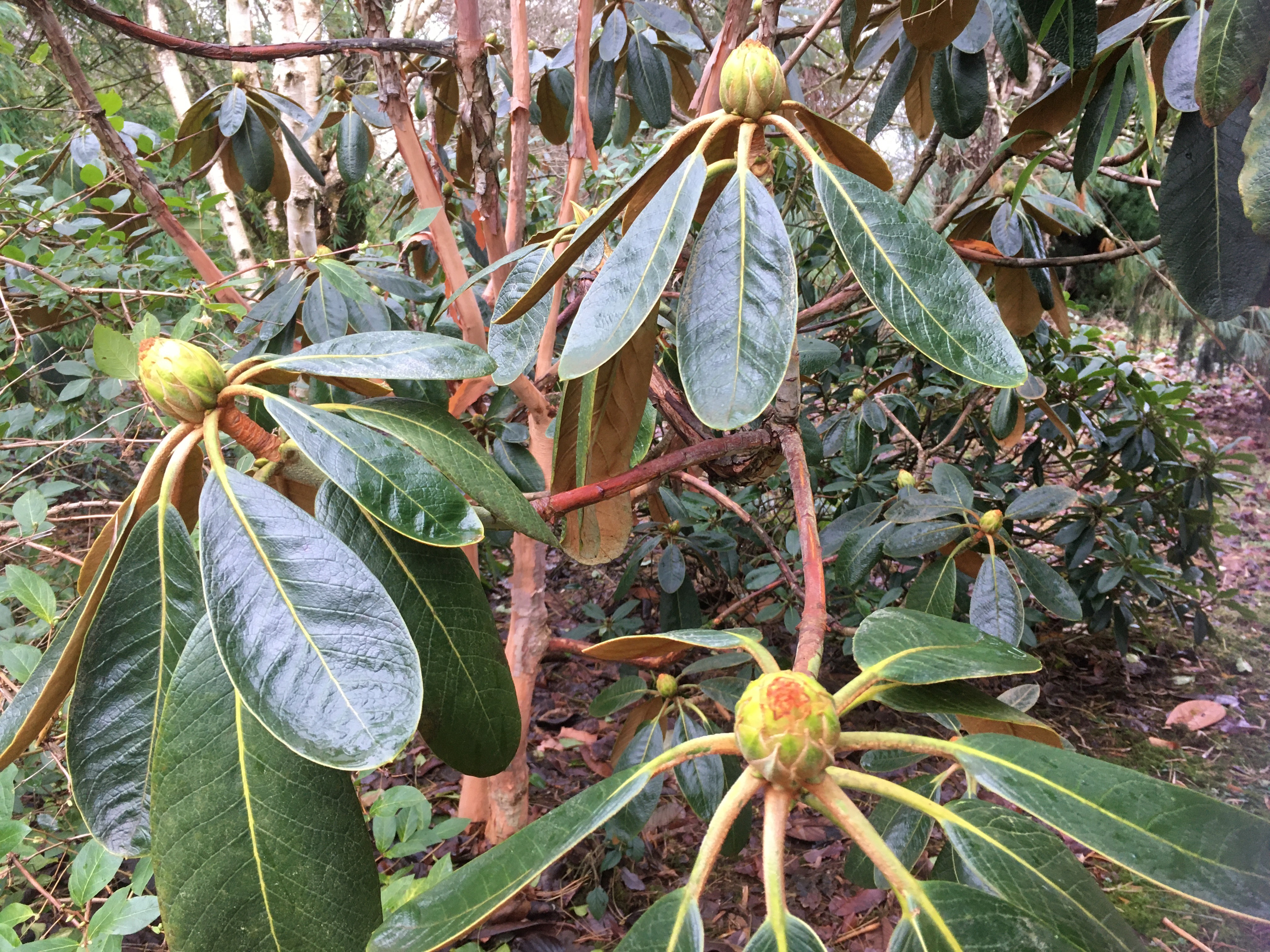 My established Rhododendron falconeri and also Rh. calophytum encouragingly have a mass of fat flower buds (provided I can protect the latter from the ravages of the grey squirrels as it is on the edge of woodland); a R. falconeri planted later has its single first flower bud, and I think the R. grande has buds (for only the second time).