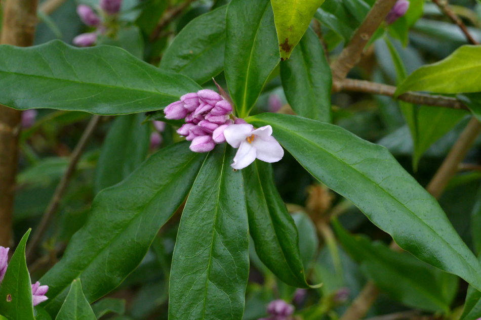 A lovely evergreen shrub which can flower from December through to March. The flowers have an amazing fragrance which can be appreciated from some considerable distance on a still day.